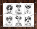 Girls With A Bow Grayscale Coloring Digital ATC Cards, Instant Download