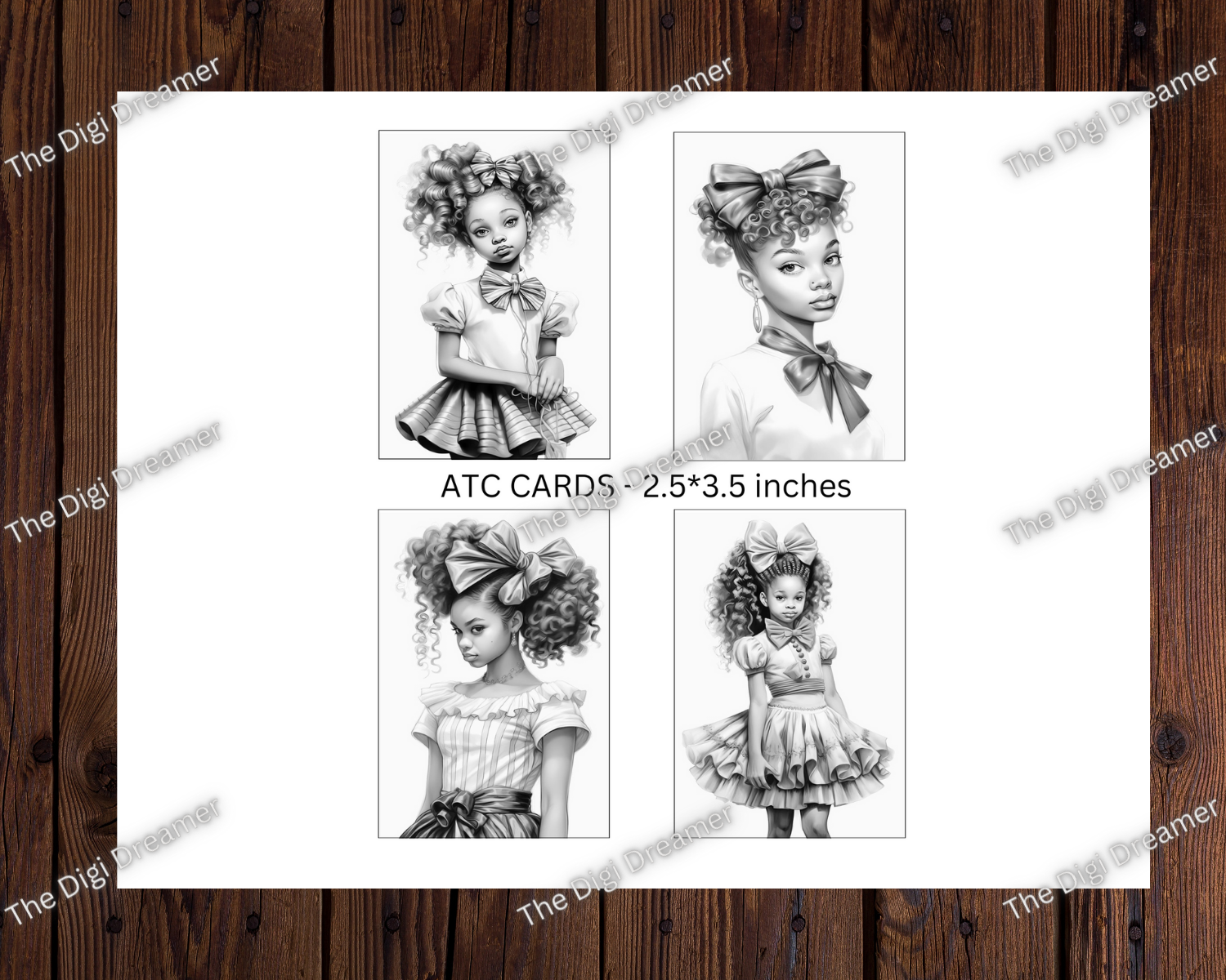 Explore a charming collection of grayscale coloring digital ATC cards featuring adorable girls with bows. Our grayscale coloring digital ATC cards showcase the timeless elegance of black and white, allowing you to add your personal touch and style.