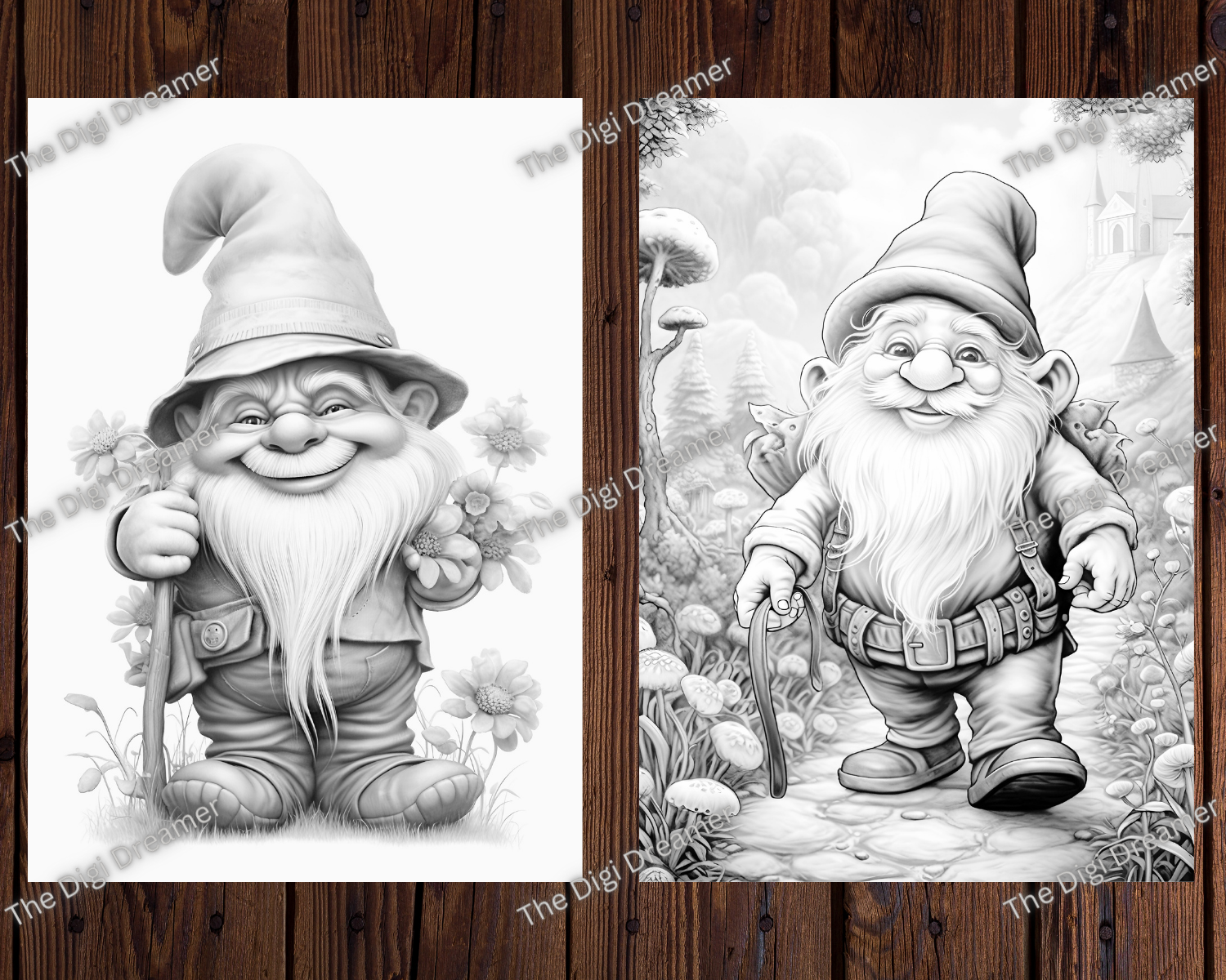 Welcome to our collection of grayscale coloring pages featuring delightful and happy garden gnomes! Immerse yourself in the enchanting world of these cheerful characters as you bring their magical garden adventures to life through coloring. Start your coloring journey today and let the magic unfold on your coloring canvas!