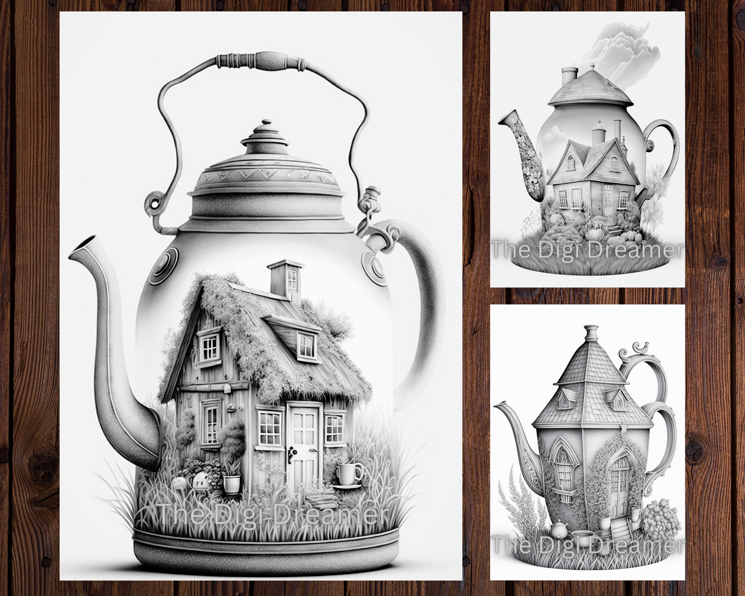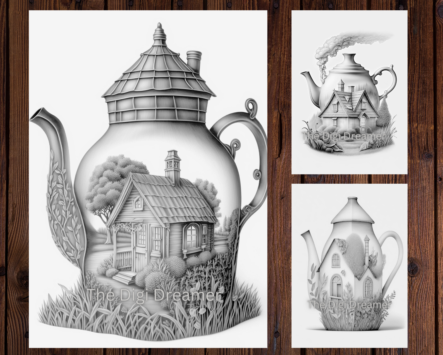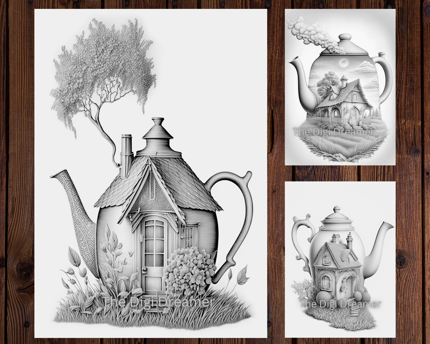 Don't wait to start your coloring journey! Browse our collection of Fairy Kettle Houses Grayscale Colouring Pages today and let your creativity run wild.