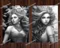 Mermaid Princesses Grayscale Coloring Pages For Adults