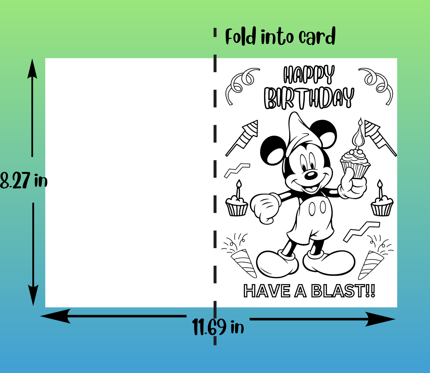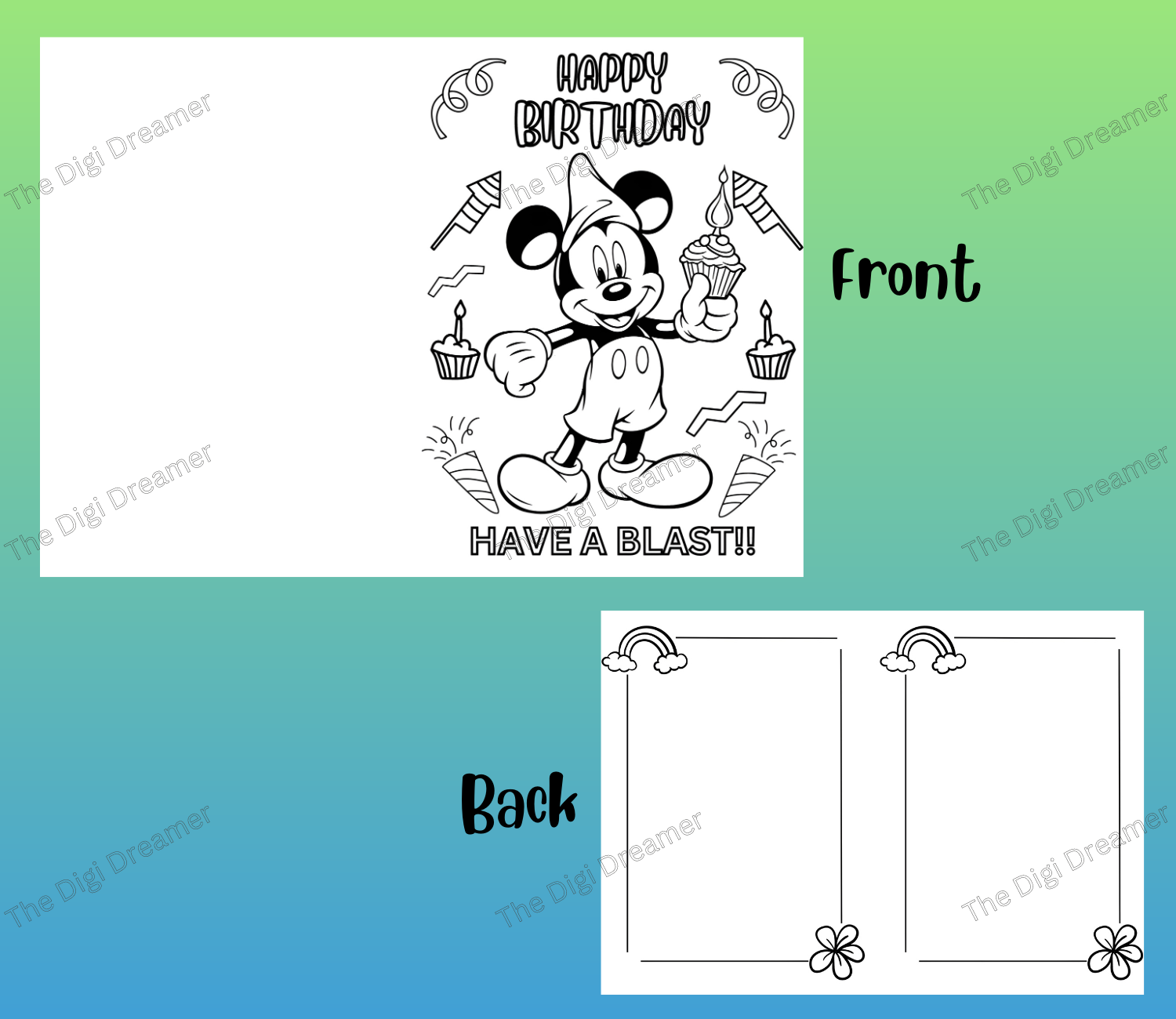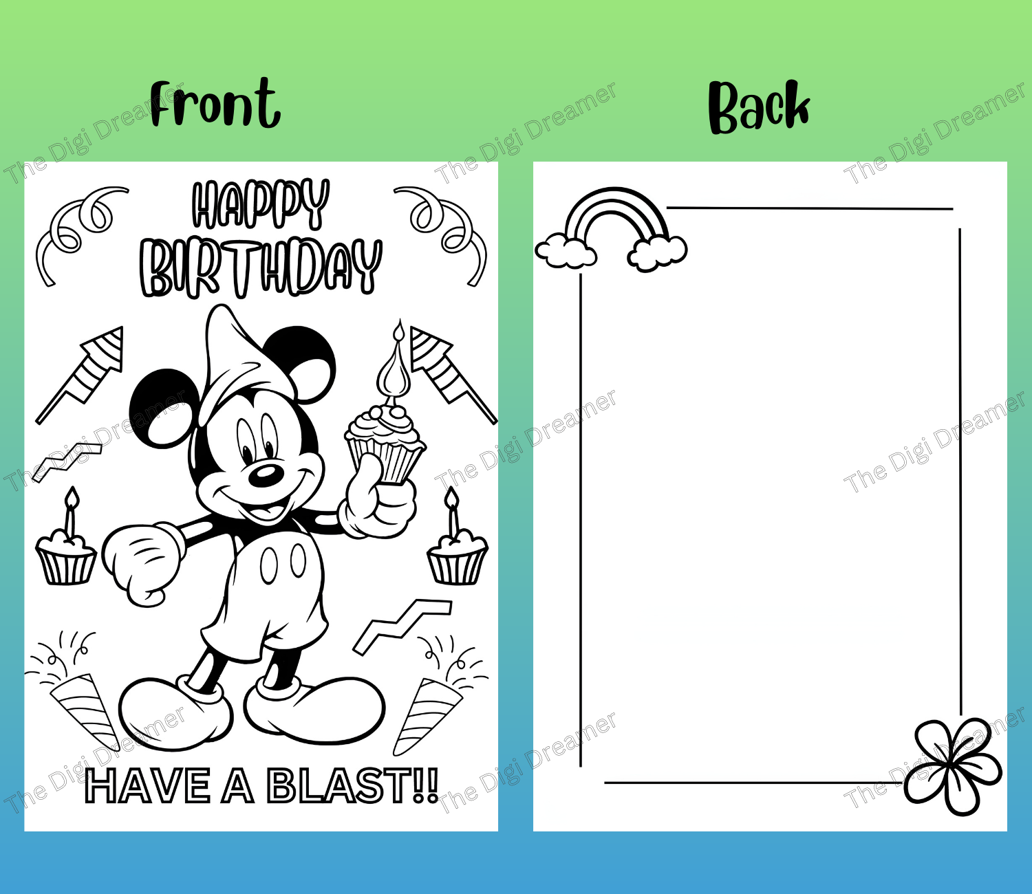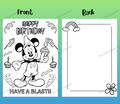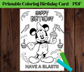 Printable Mickey Mouse Coloring Birthday Greeting Card, DIY Birthday Gift