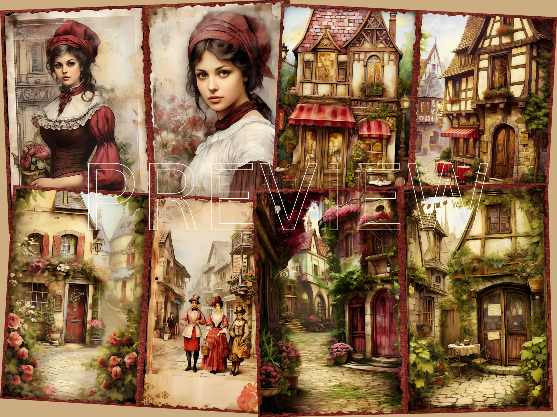 Rustic 1500's European Village-Printable Junk Journal Pages, Journal Cards, ATC Cards, Digital Download