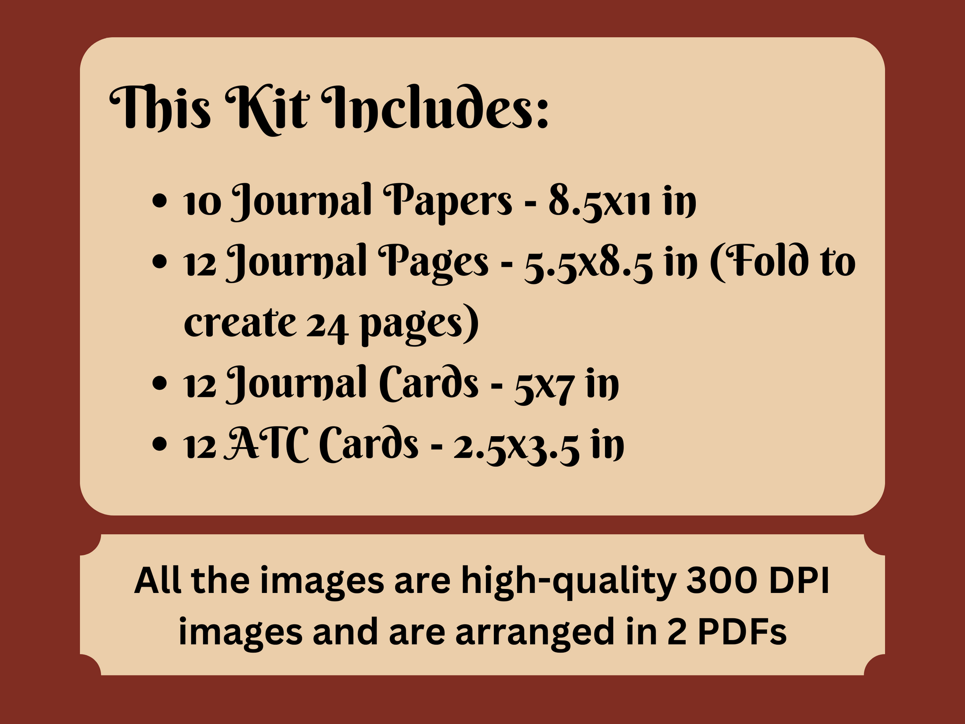- 12 Journal Pages Size: 8.5x11 in ( fold to create 24 pages of size: 5.5X8.5 in)