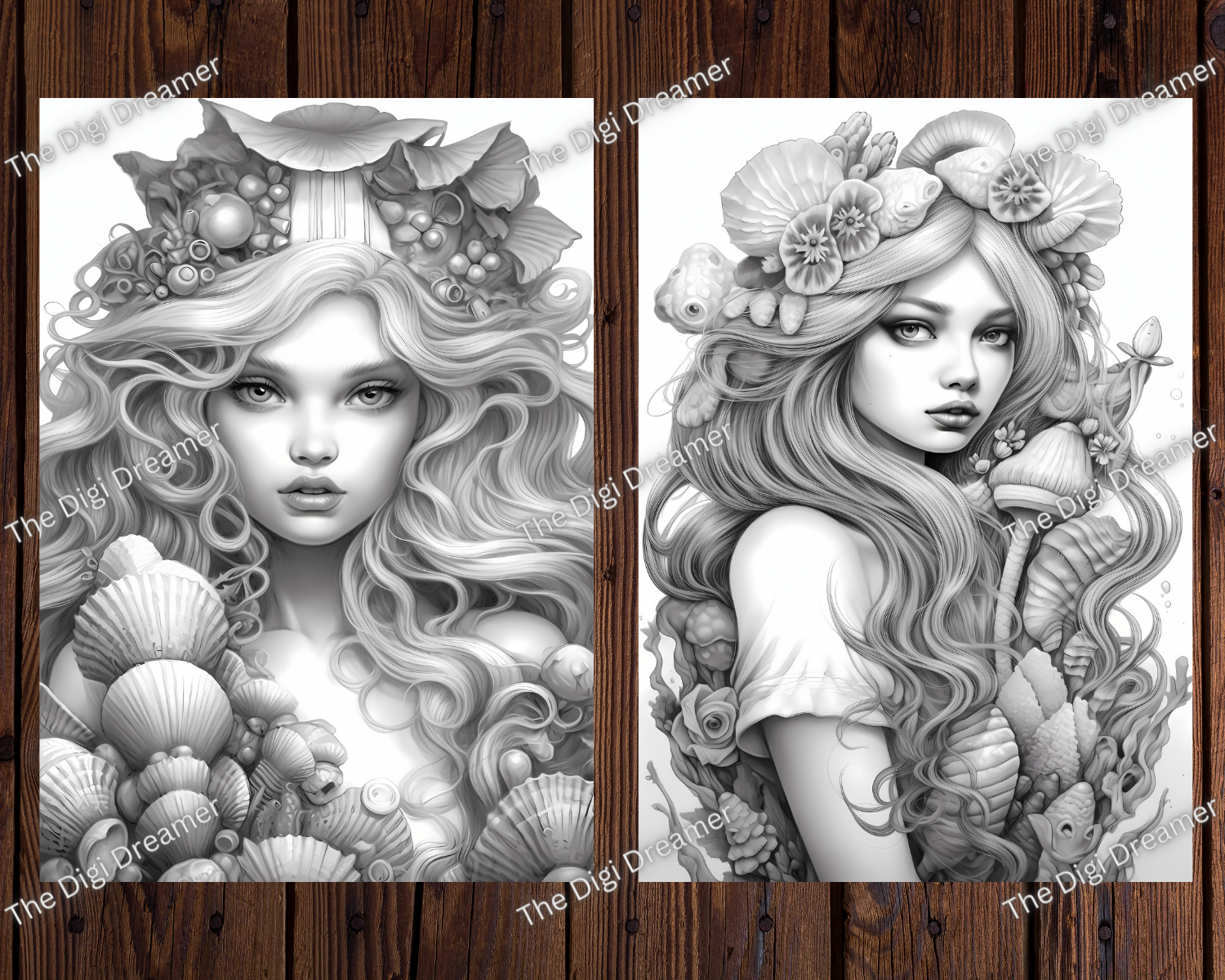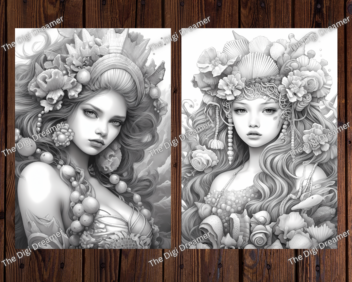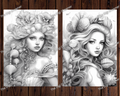 Serene Ocean Princesses Grayscale Coloring Pages for Adults