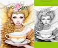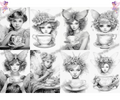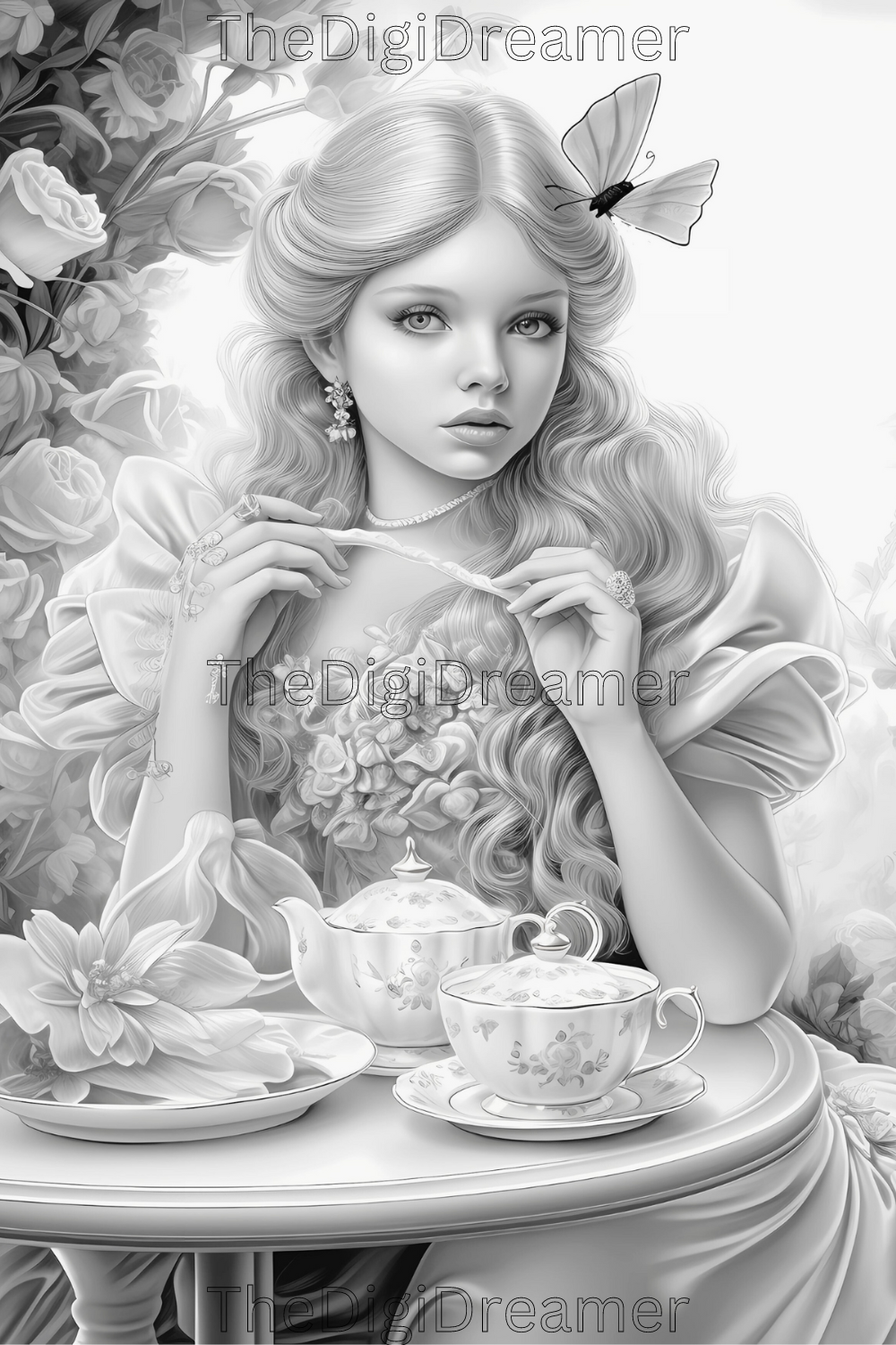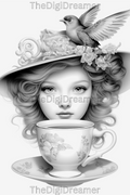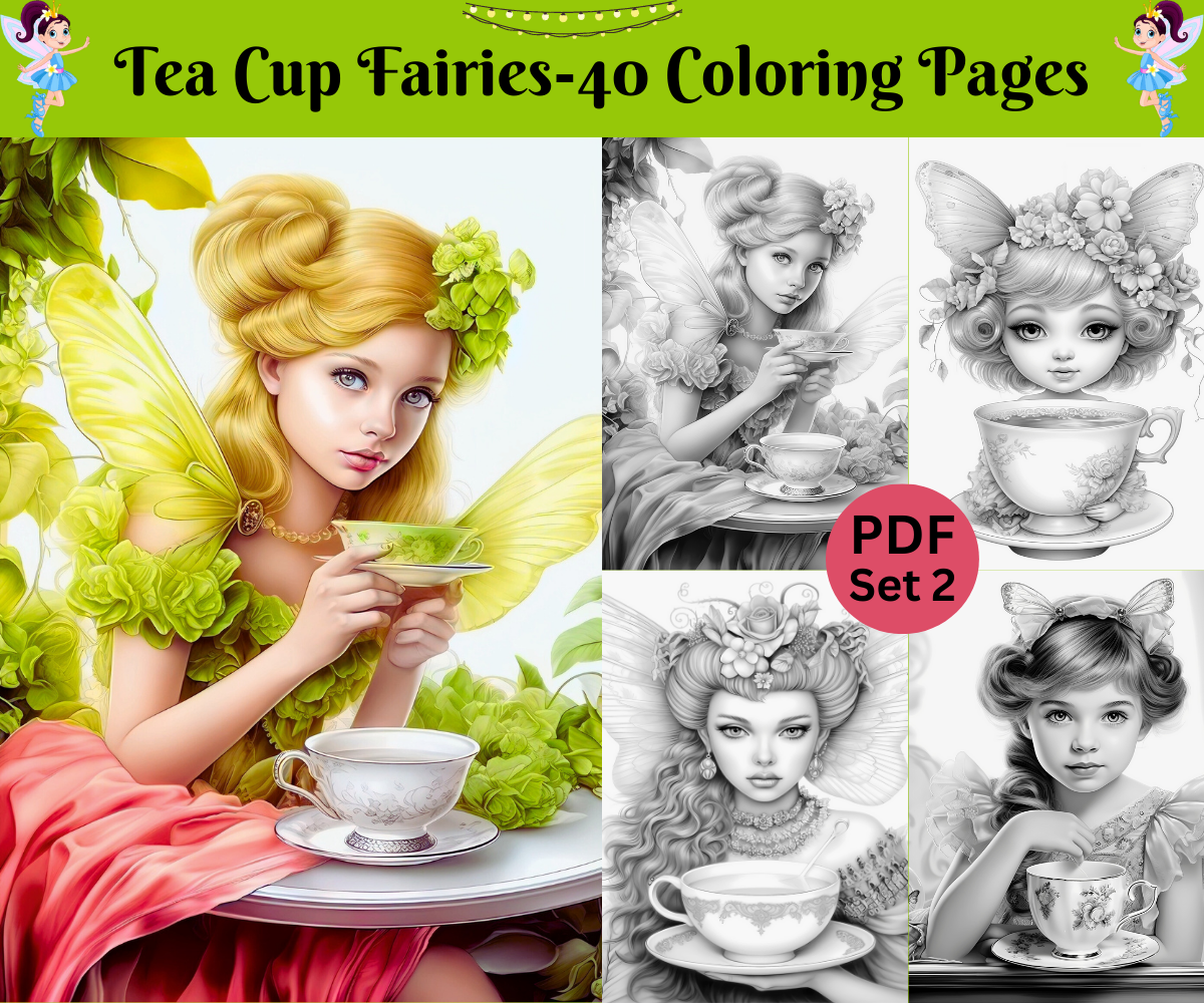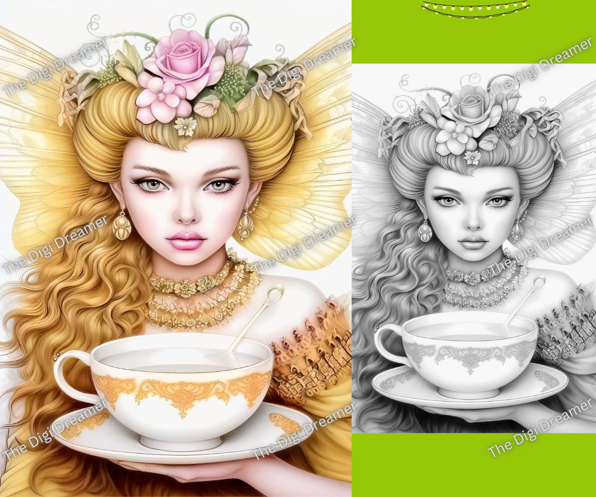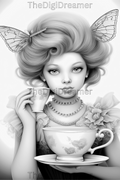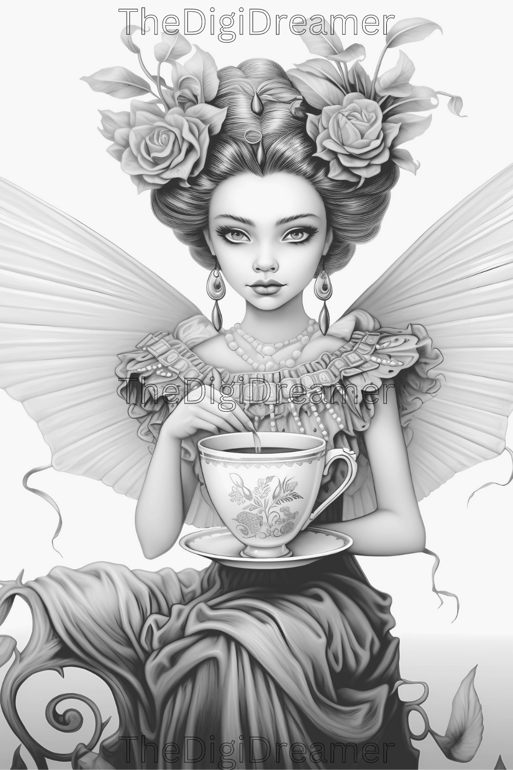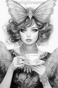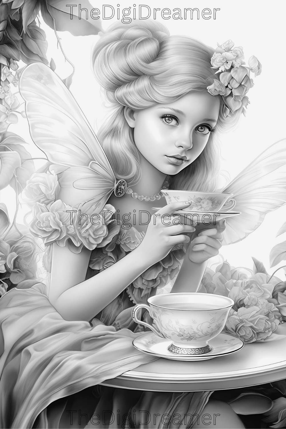 40 Tea Cup Fairies Set 2-Grayscale Printable Coloring Pages For Adults, Digital Download