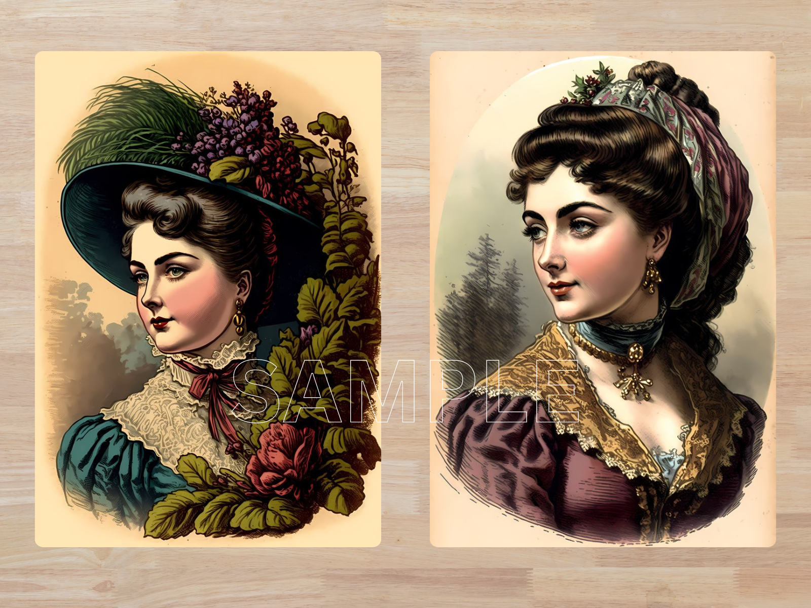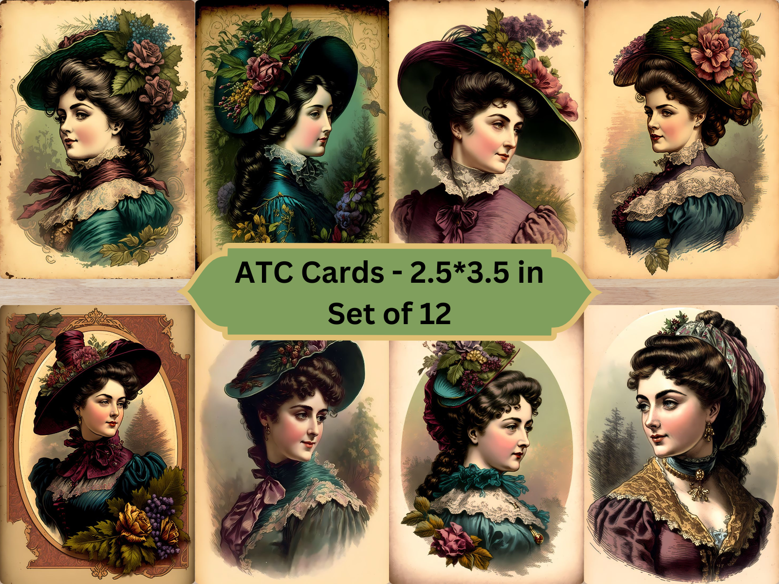 Victorian Women Digital ATC Cards, Set of 12, Digital Download