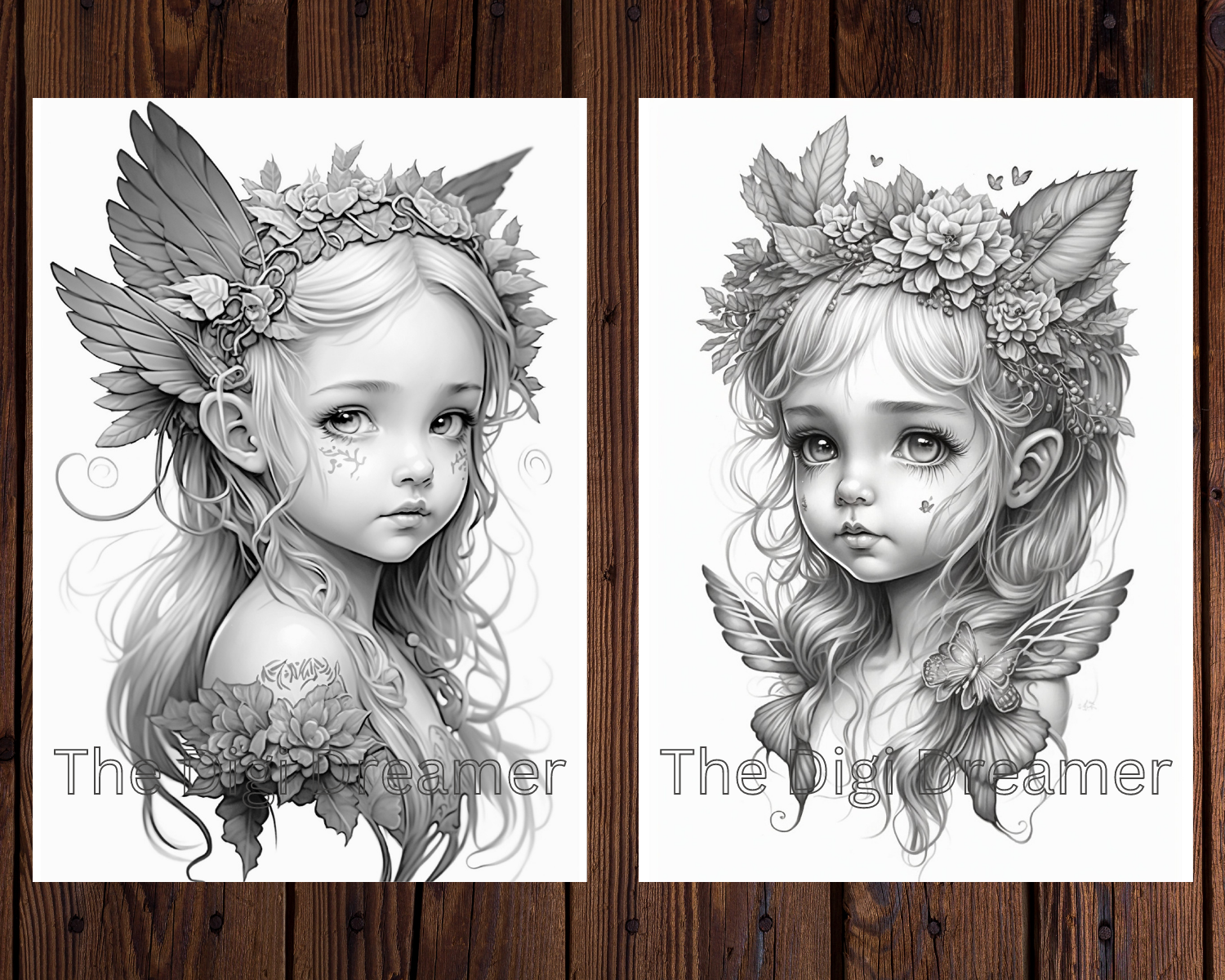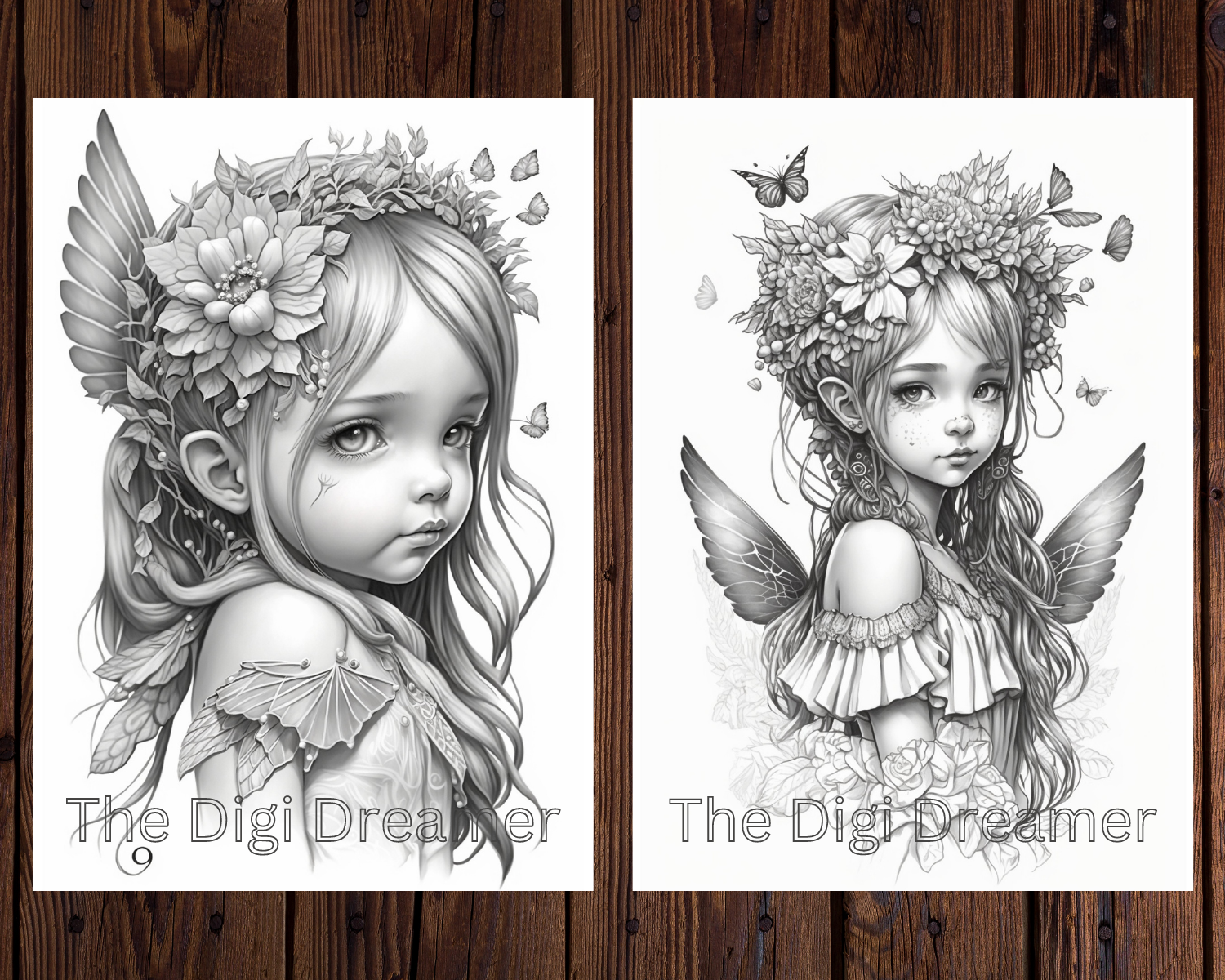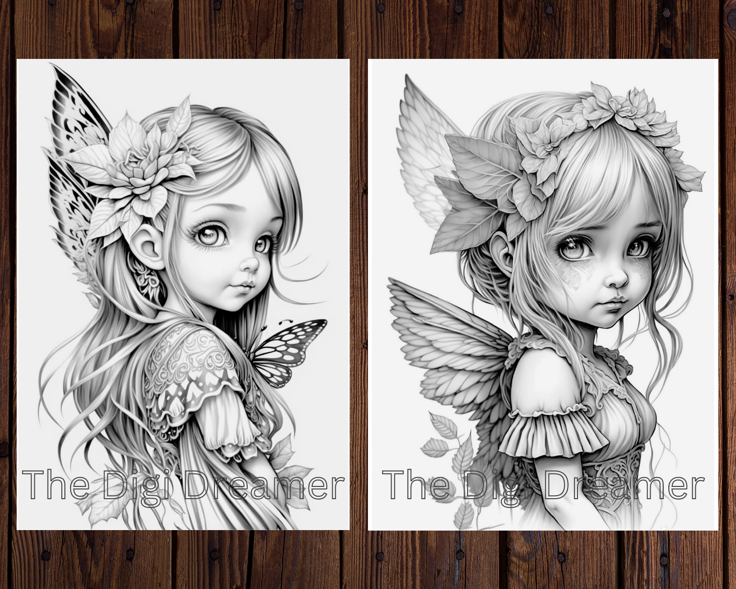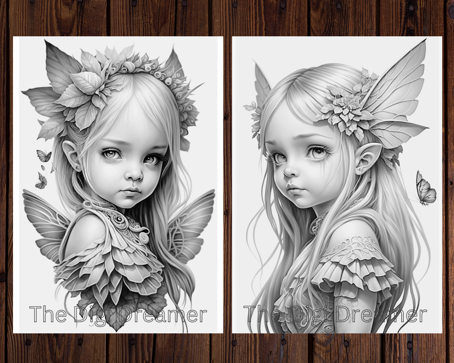 Whimsical Butterfly Wings Fairies Grayscale Coloring Pages for Adults & Kids